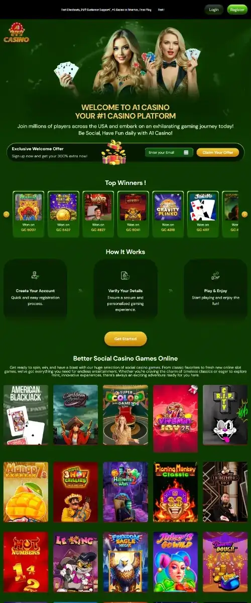 Common praise centers on the large game selection, responsive mobile site, and quick live chat. Recurring complaints mention slow or inconsistent redemptions, ACH only payouts, and a modest 1 SC sign up freebie with daily bonuses locked until after a purchase. A1‑Casino launched in 2025, so some teething issues should be expected, but the payoff experience remains the area players most want improved. We do not accept affiliate commissions, which helps keep this assessment impartial.