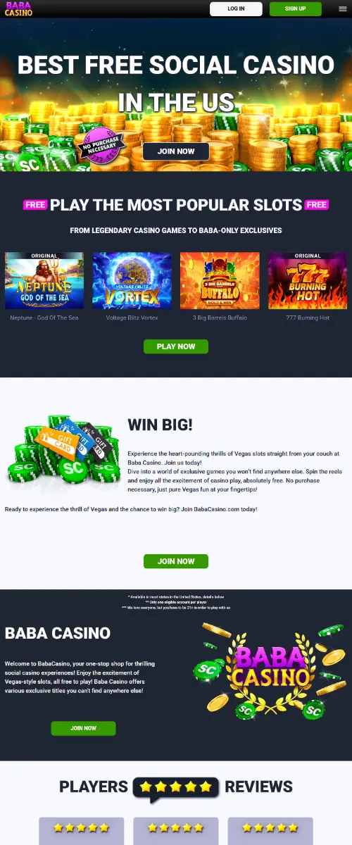 Chasing sharp value on a first purchase and a steady daily SC trickle? Baba Casino ticks those boxes and even throws in a small live-dealer lobby. The signup SC feels modest, yet the weekly calendar gives plenty and redemptions stay simple.