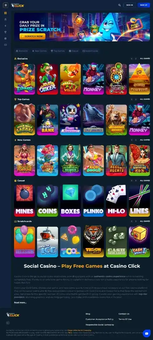 Expect scratchcards and instant win options such as Plinko, Crash, and Wheel, plus a proprietary Clickoins game that gives you a quick hit format if you want a break from reels.