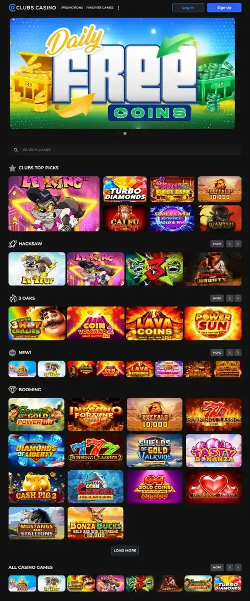 Clubs Casino focuses on clear value: a hefty first purchase boost to 40 SC, a steady 0.5 SC each day, and slots from Pragmatic Play, Relax Gaming, and Hacksaw. The catalog runs smaller and banking stays bare-bones, yet early value and plain rules make an easy pick for casual slot play.