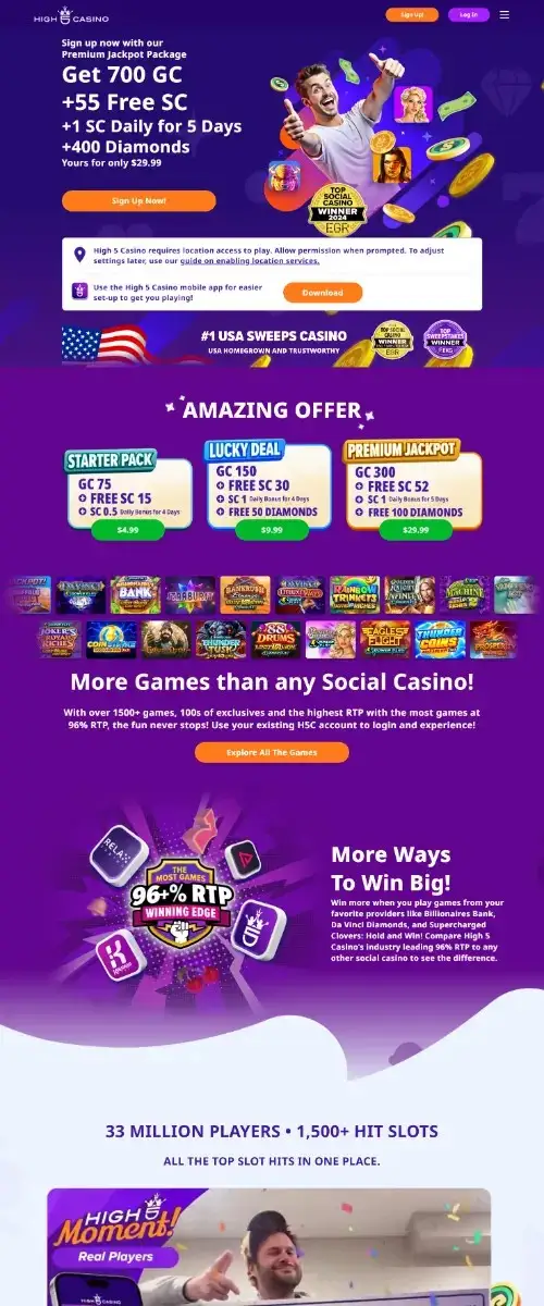 High 5 Casino runs smoothly on both the dedicated apps and the mobile browser version. The apps mirror the desktop layout, games load quickly, and navigation feels responsive. Feature parity holds up well, so you can claim offers and redeem on mobile without friction.