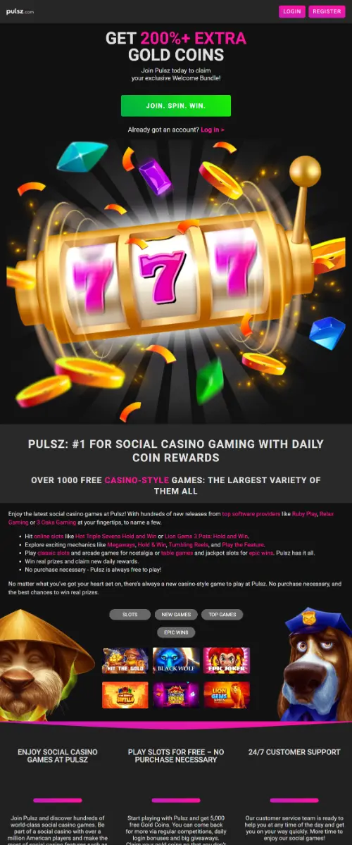 At Pulsz, scale and convenience take point: 1,000 plus games, daily Sweeps Coins, quick Skrill cashouts, and fully native apps for iOS and Android. The signup bundle feels practical, and first purchase deals deliver strong SC value for newcomers.
