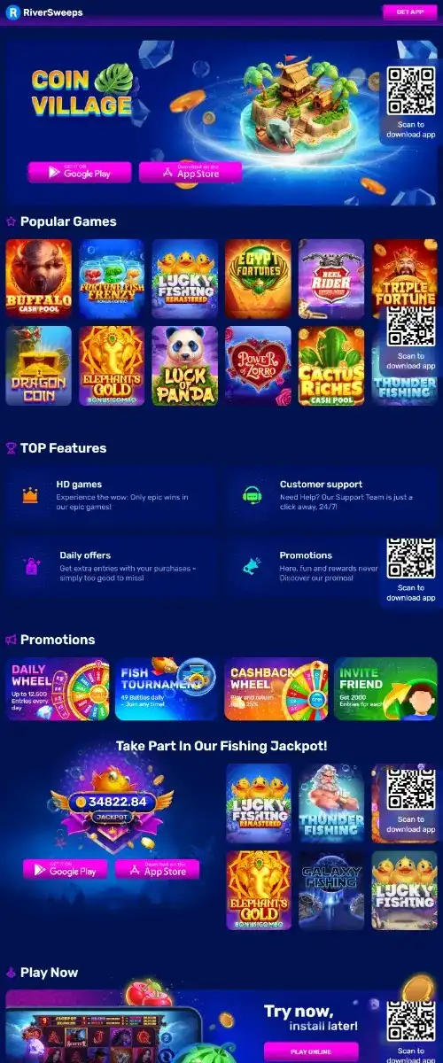 NetGame Entertainment provides many of the slots, with additional proprietary RiverSweeps titles. We did not see the big multi studio rosters common at the largest sweeps casinos.