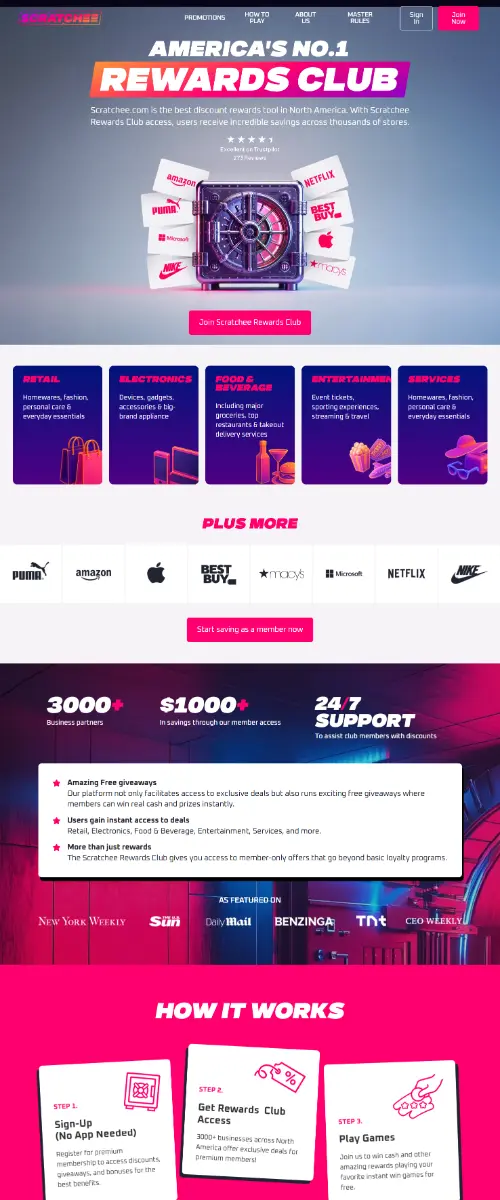 If instant-win scratchers appeal to you, Scratchee takes a straightforward path: 1 Scratch Coin equals 1 dollar, bank payouts often land about 24 to 48 hours after verification, and the first top-up brings a 100 percent match up to 100 SC.