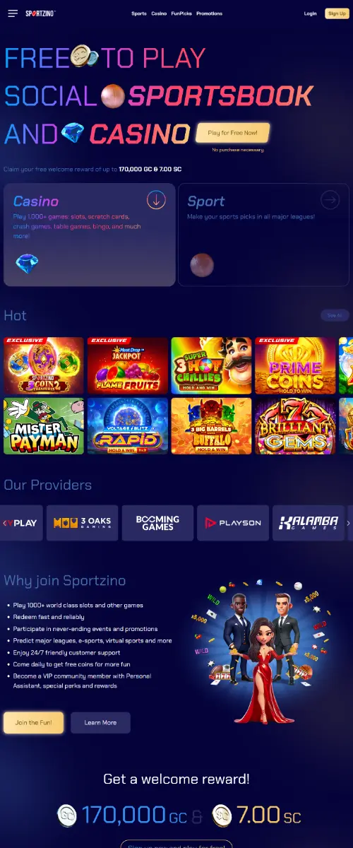 If you want frequent free SC, quick bank‑transfer redemptions, and a combined social casino plus sportsbook, Sportzino fits the brief. The no‑purchase path feels generous and payouts rarely drag, though payments run card‑only and table games don’t appear.