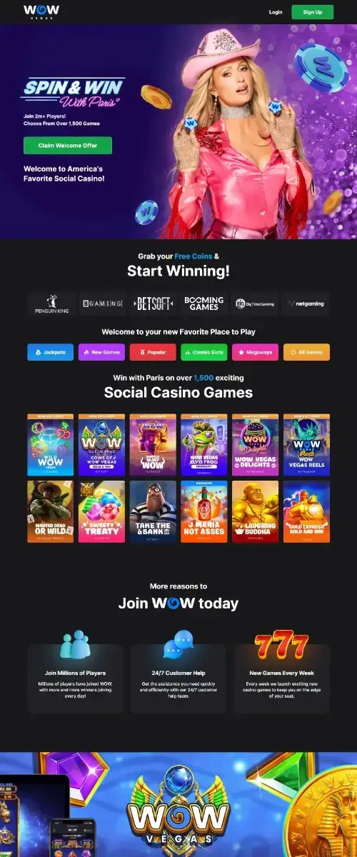 WOW Vegas feels strong with more pros than cons, especially for slot-first players who want generous promos and a broad studio mix.