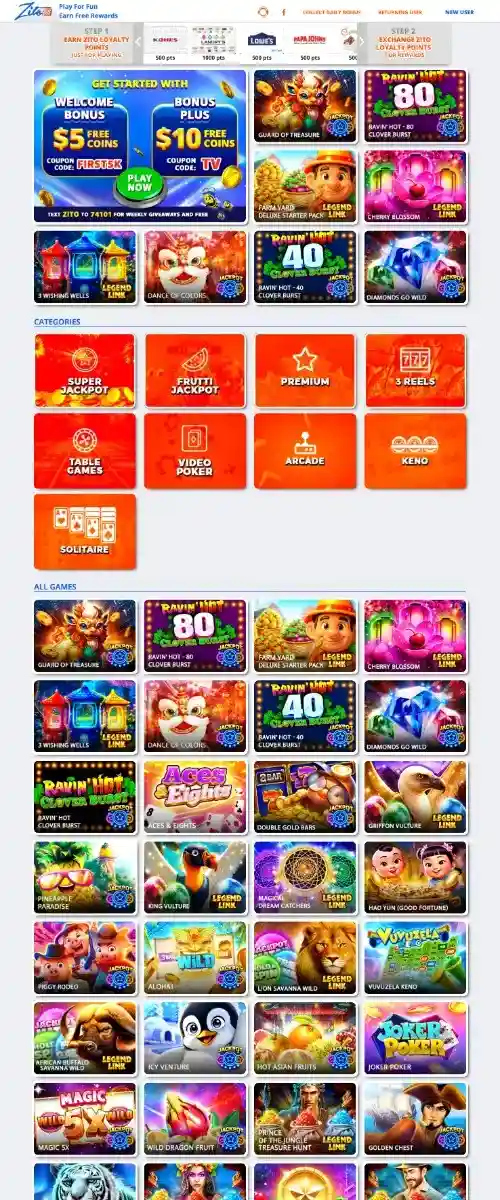 The standout perk: Zito Points redeem with no playthrough, and you can earn some right away for verifying your email. Below are the redeemable currency offers we confirmed.